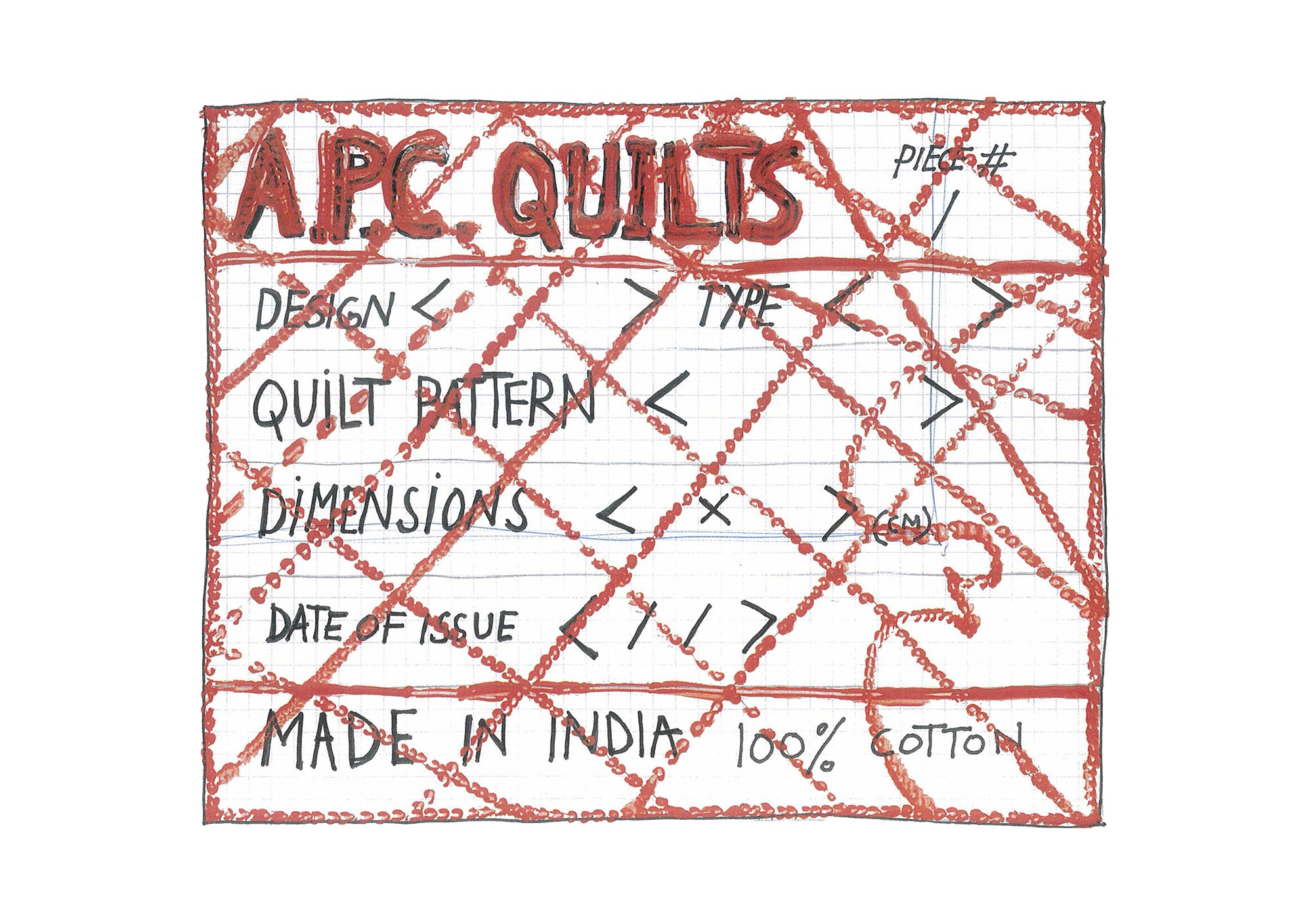 Jessica Ogden began collaborating with A.P.C. in 2000, and it was in 2011 that she started designing quilts. From her studio in Jamaica, Ogden reworks A.P.C.’s Surplus fabrics to create exclusive editions of quilts and cushions.