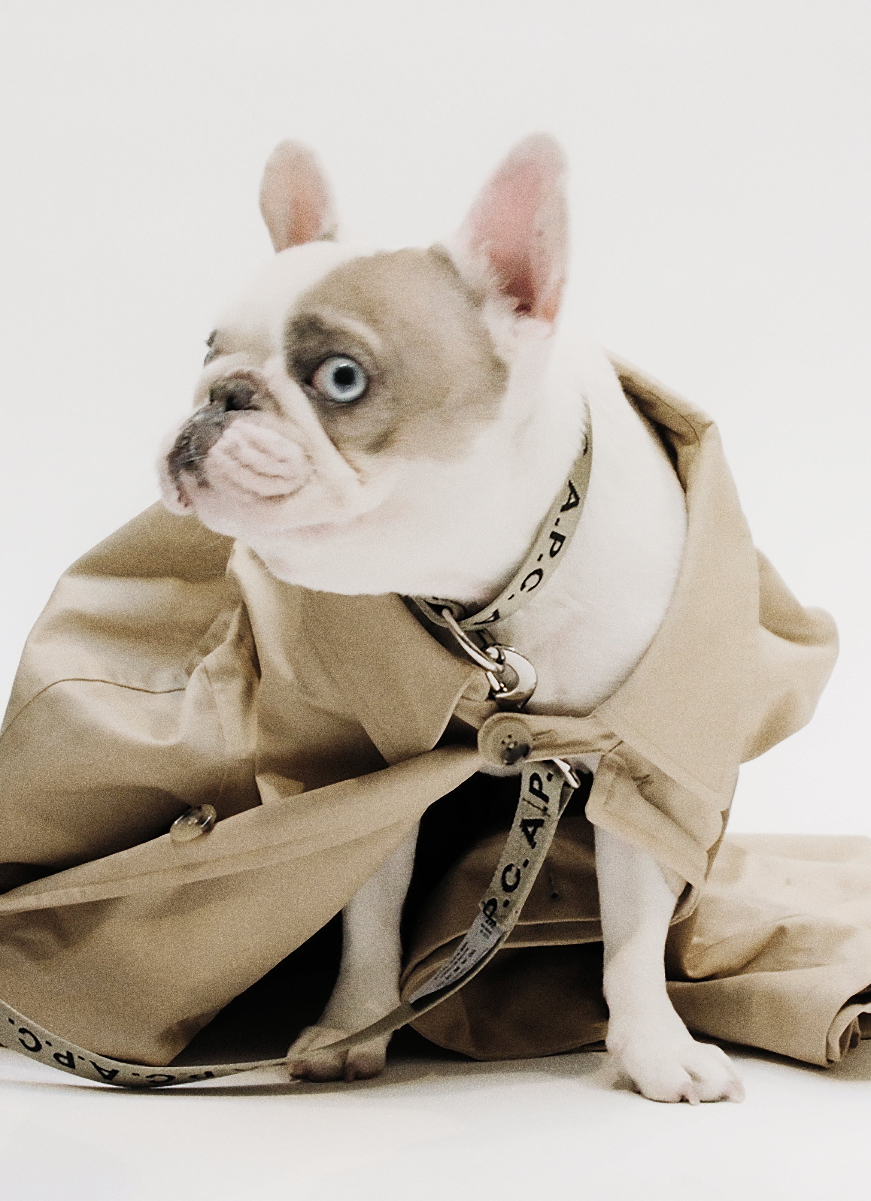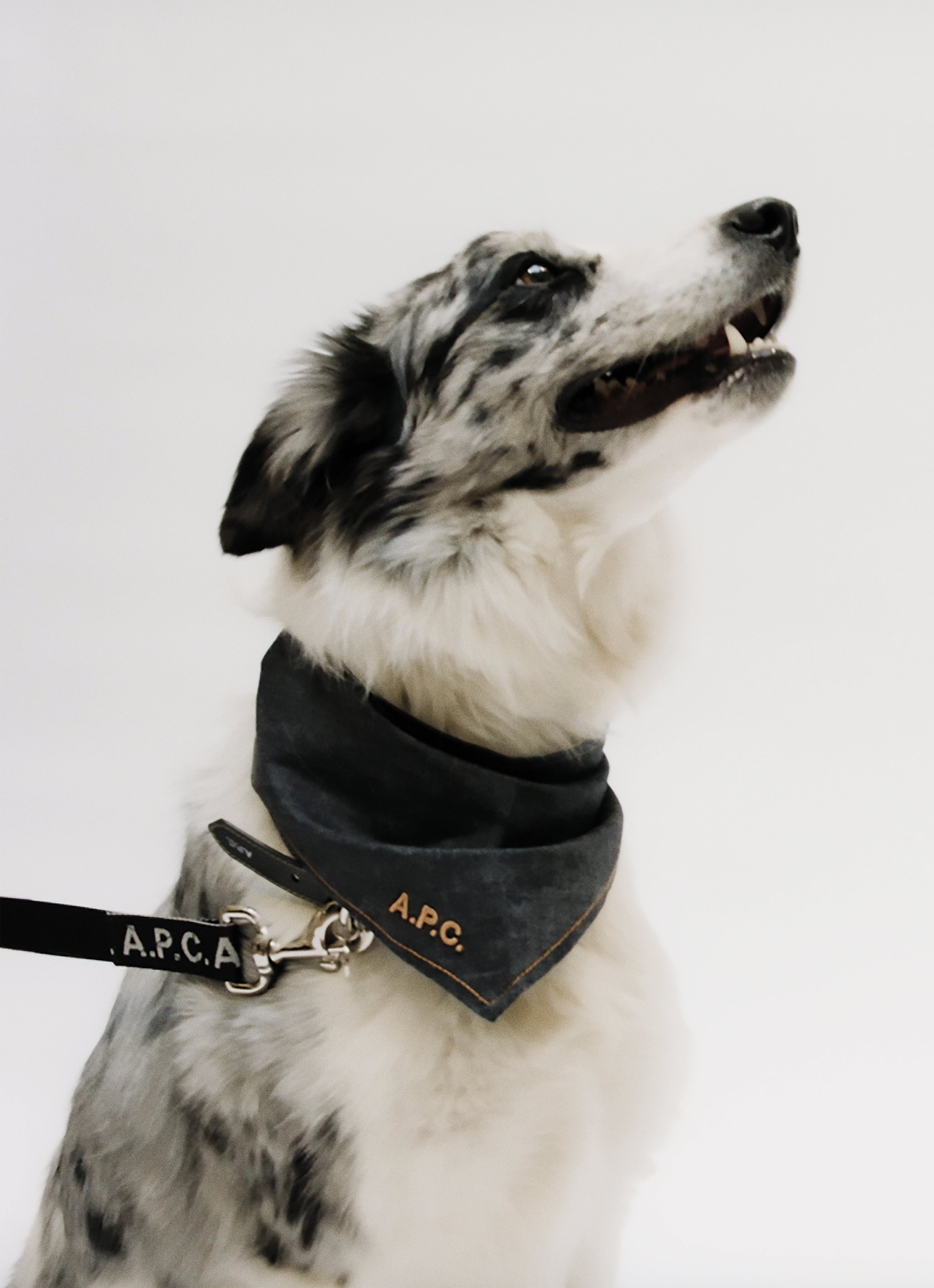 Our first collection for dogs brings A.P.C.’s signature minimalistic detailing to pet essentials. From muted-toned leashes to personalized denim bandanas, each piece in the capsule collection is crafted by repurposing our fabrics, including leather, deadstock denim and nylon.
