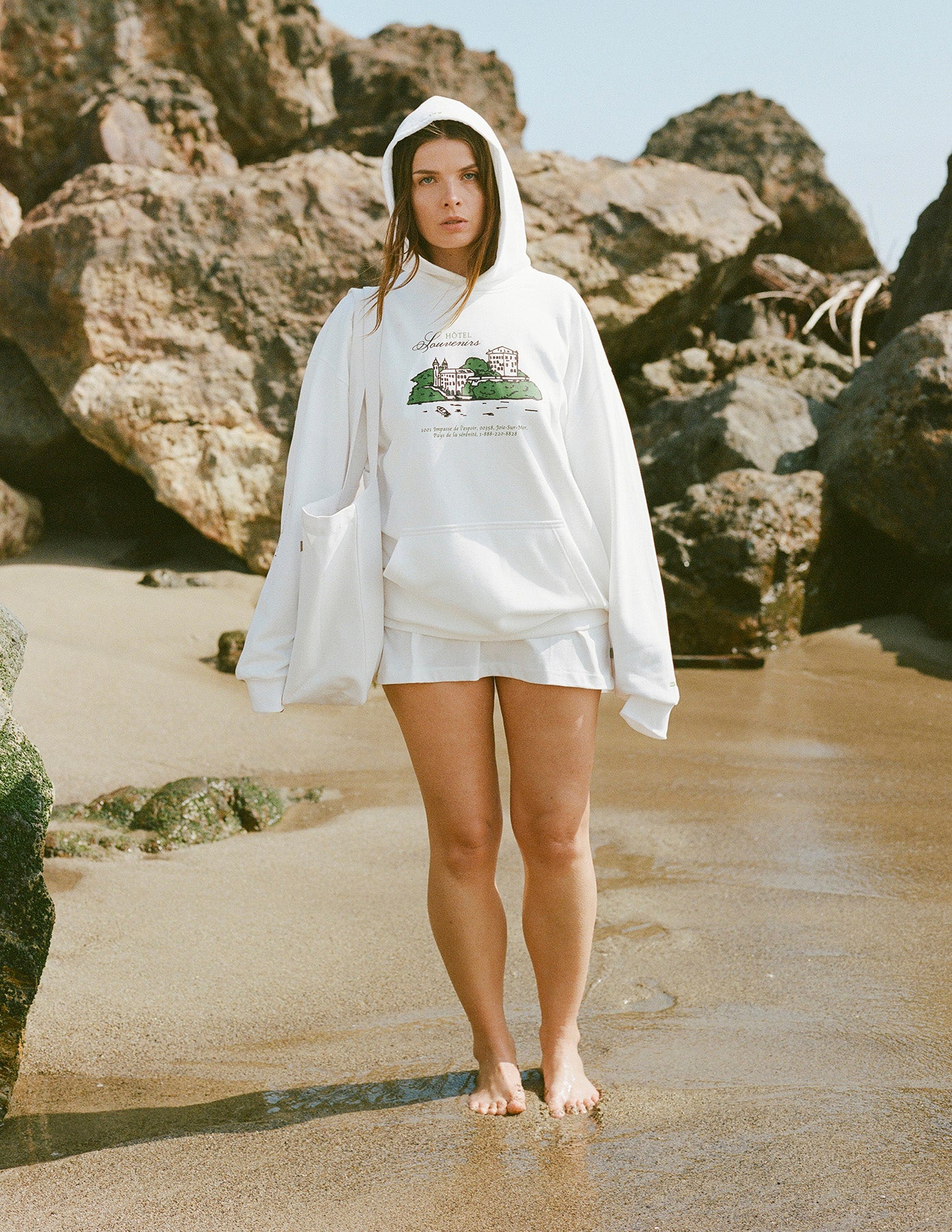 JJJJound describes the facility as follows: "For this collaboration with A.P.C., we invented an 'imaginary hotel' in a utopian world where all events unravel exactly as we anticipate, thus highlighting the superiority of the concept over the actual manifestation."