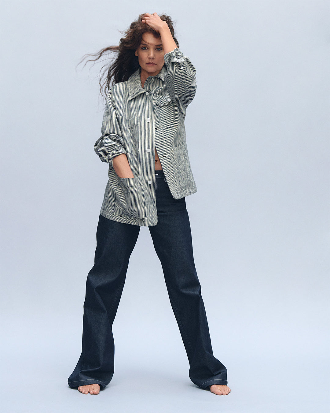 American actress Katie Holmes, a loyal A.P.C. customer since the nineties, collaborated with the Parisian brand for an interaction composed of a dozen very feminine pieces and a line of extremely refined accessories.