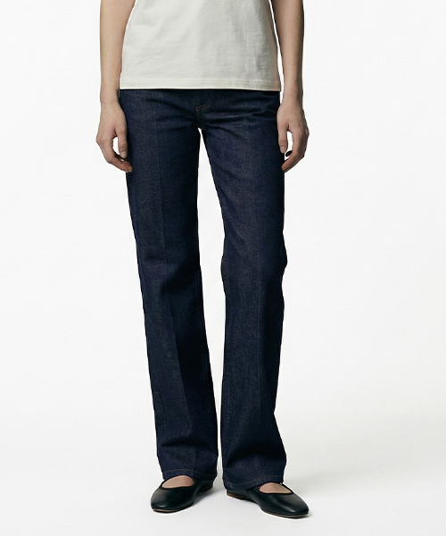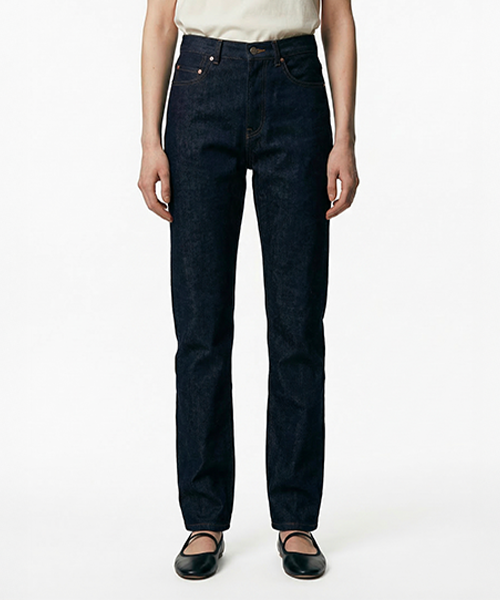 Vintage-style jeans in indigo Japanese denim with straight cropped leg.