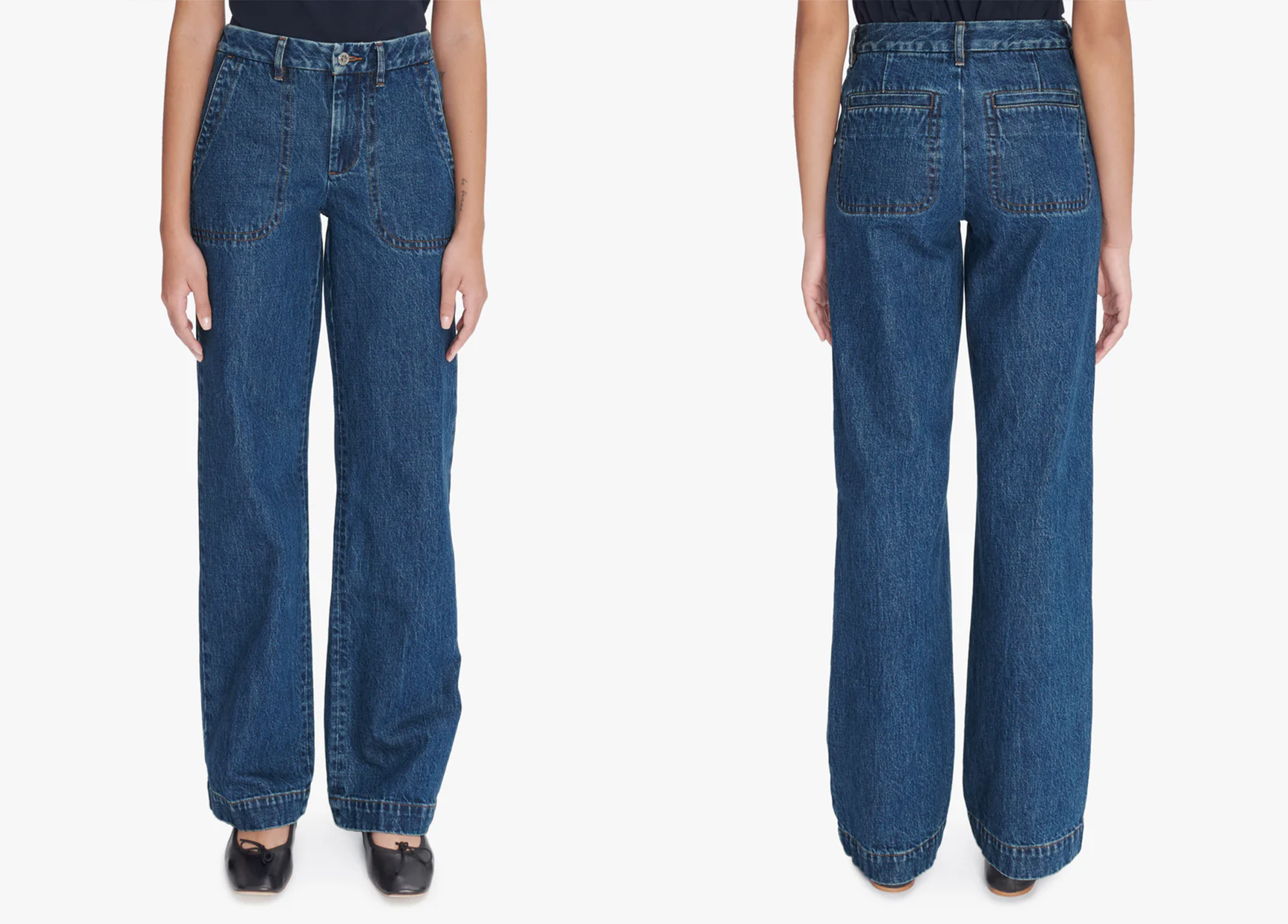 High-rise with marine-inspired topstitched pockets, the Seaside has a confident seventies spirit. Its leg lengthens the silhouette even in flat shoes, making it an easy choice across a wide range of occasions.